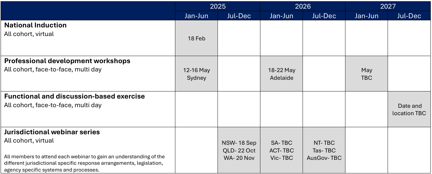 NBRT PD Week 2026 will build on learning from the 2025 workshop and provide members with the opportunity to explore, apply and practice their collective understanding of biosecurity emergency response in a simulated environment. Members can expect three and a half days of workshops intended to provide them with an understanding of national response arrangements whilst developing the critical skills required to lead incident management and functional teams during a response. Members will gain hands-on experience through practical activities and group discussions, while also benefiting from valuable insights shared by subject matter experts and past NBRT members during presentations and panel discussions.